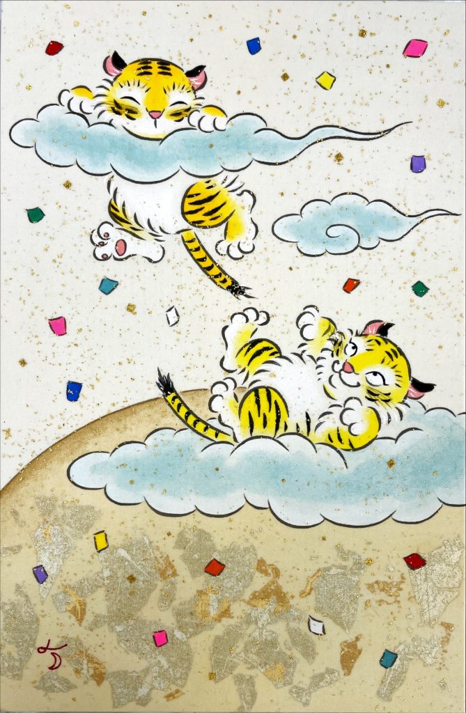 「虎の子、雲」33×22cm/絹本彩色