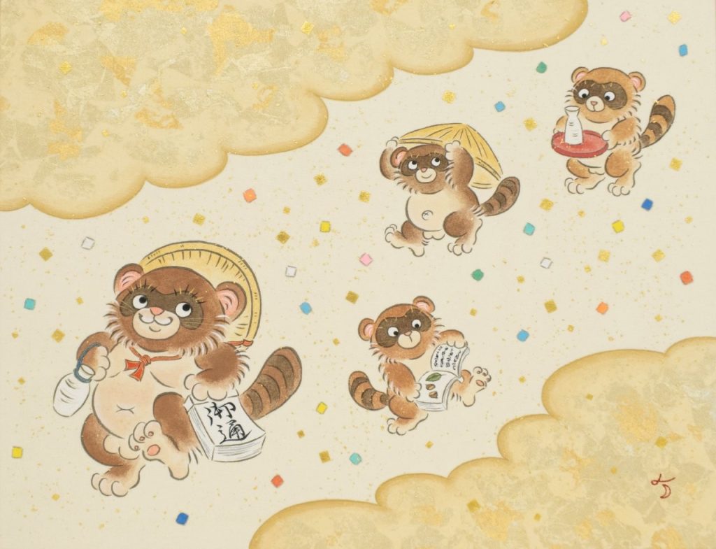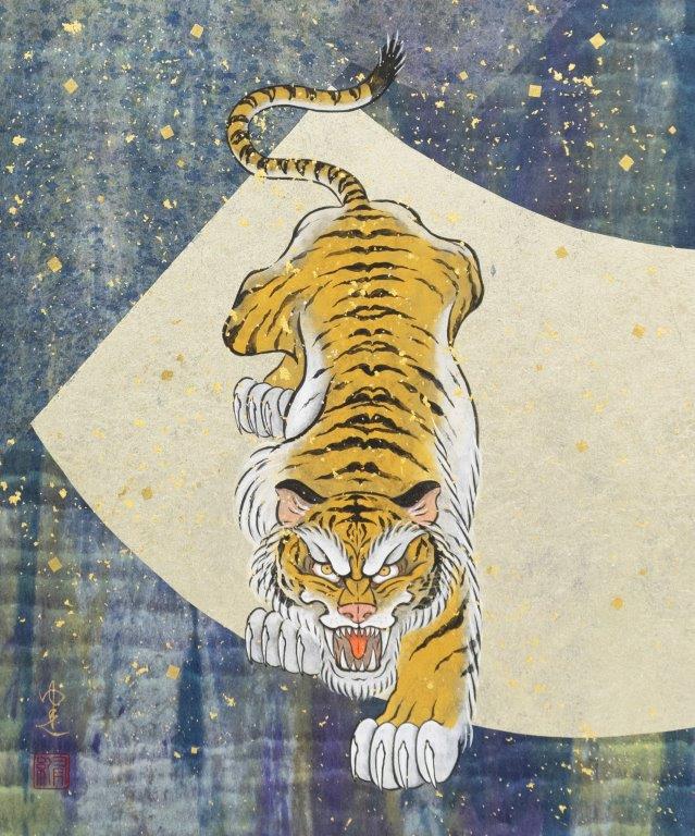 伝統絵画に描かれた神獣や縁起を担ぐモチーフを、岩絵具、金箔など、1000年に渡り継承された日本画の技法・画材で、遊び心溢れる画面を創造し、日本画の幅広い層への広がりを求める画家。